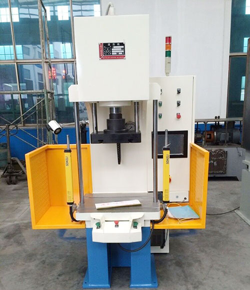 6、龍門液壓機(jī)開(kāi)動(dòng)設(shè)備試壓,檢查壓力是否達(dá)到工作壓力,設(shè)備動(dòng)作是否正??煽?,有無(wú)泄露現(xiàn)象。